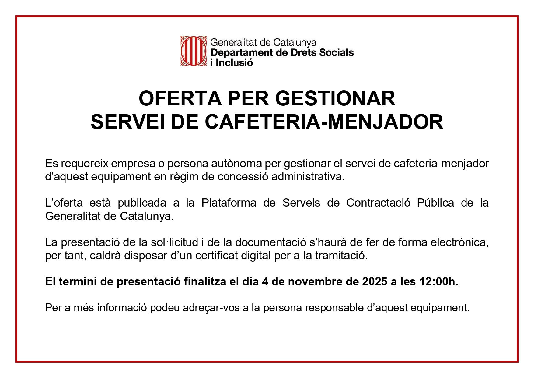 Licitació servei cafeteria-restaurant Casal Cívic i Comunitari de la Pobla de Segur