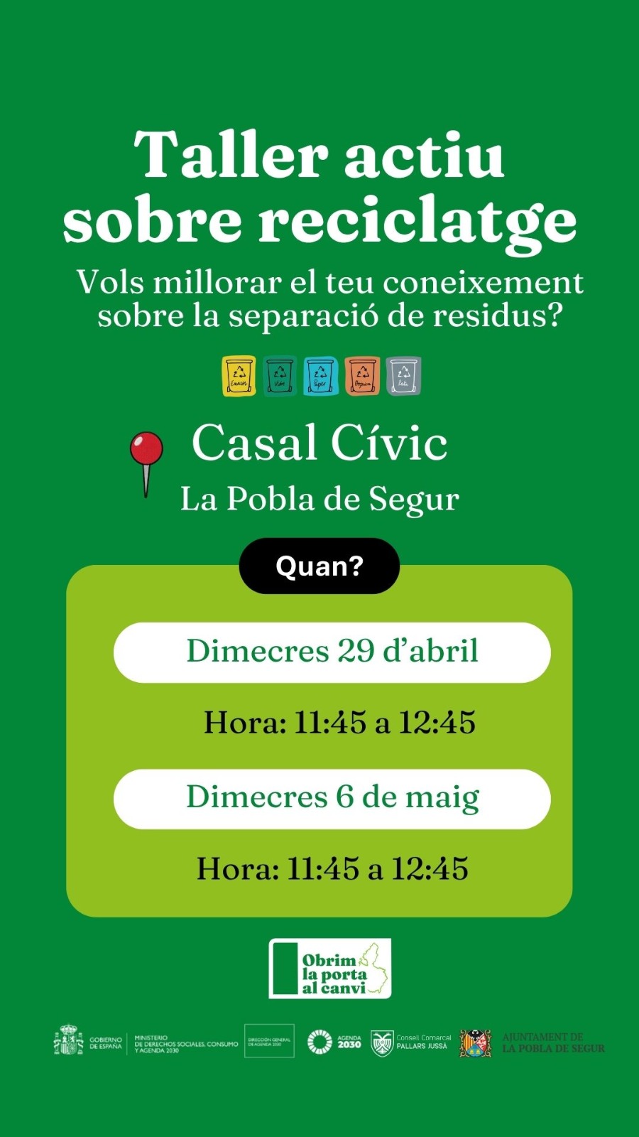 Dimecres 29 d'abril i dimecres 6 de maig, al Casal Cívic.